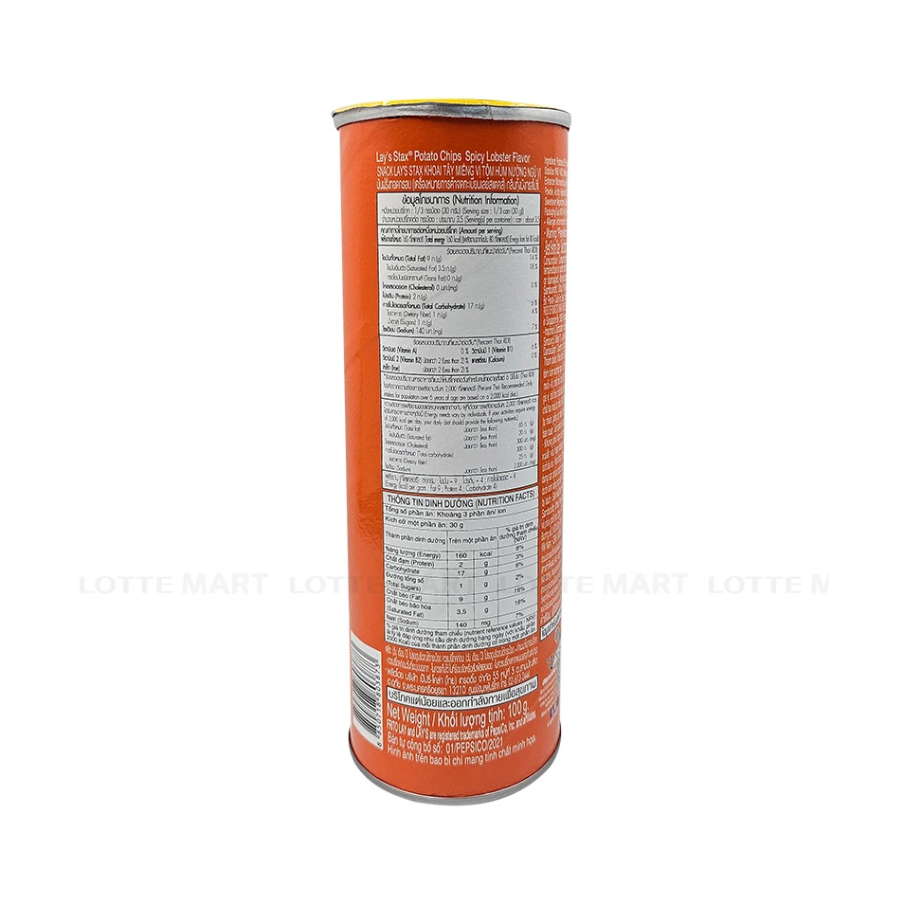 Moreover, Lay's Stax Spicy Lobster Potato Chips - Halal are versatile. They can be enjoyed on their own or paired with your favorite dips and sauces. Their light and airy texture make them a great complement to a variety of flavors, enhancing your snacking experience.