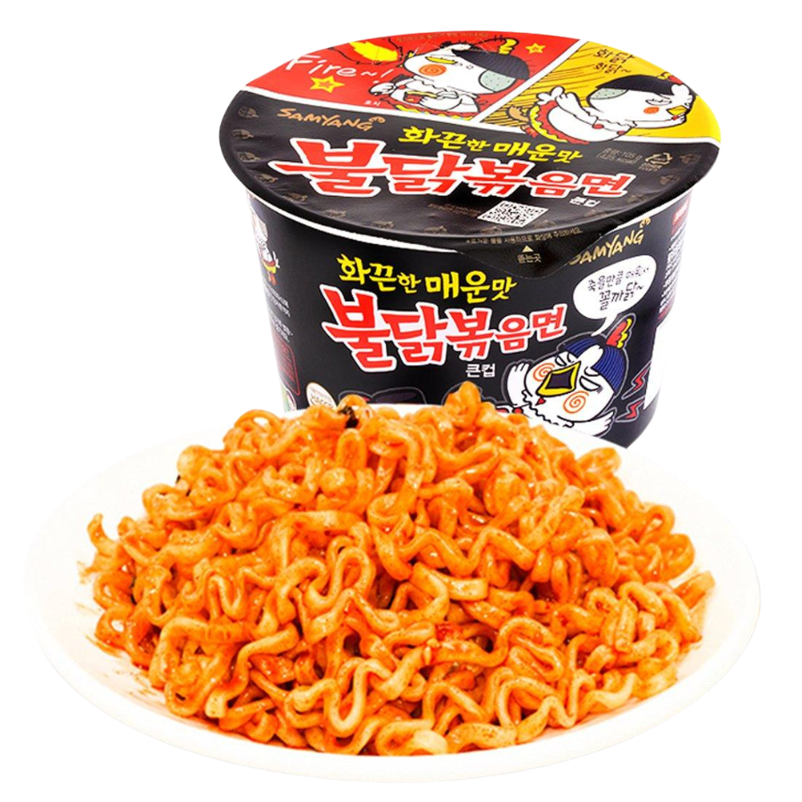 Samyang Dried Chicken Spicy Noodles 105g with extremely spicy with Samyang dry noodle sauce, the rich and attractive spicy chicken flavor permeates each delicious golden chewy noodle with a seductive aroma that stimulates the sense of smell and taste
