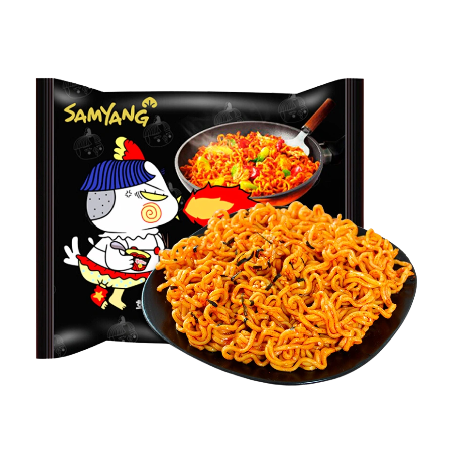 Samyang Dried Spicy Chicken 140g with the extremely spicy with Samyang dry noodle sauce, the rich and attractive spicy chicken flavor permeates each delicious golden chewy noodle with a seductive aroma that stimulates the sense of smell and taste
