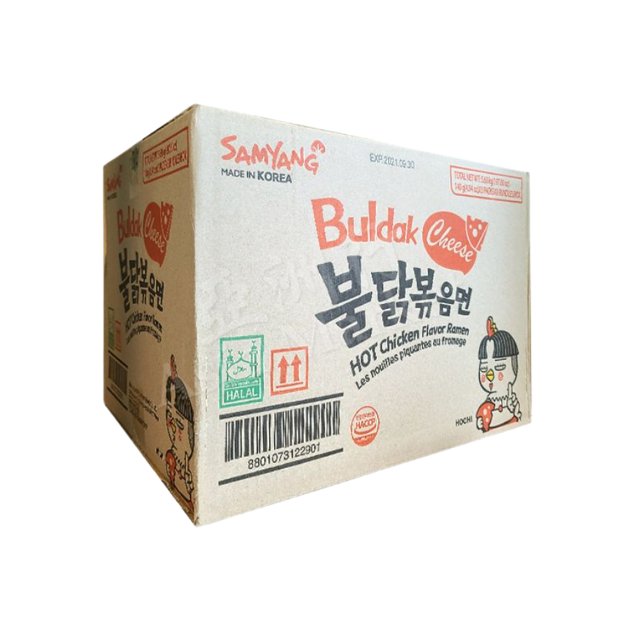 Samyang Spicy Chicken With Cheese 140g with the extremely spicy with Samyang dry noodle sauce, the rich and attractive spicy chicken flavor permeates each delicious golden chewy noodle along with the seductive aroma of cheese that stimulates the sense of smell and taste