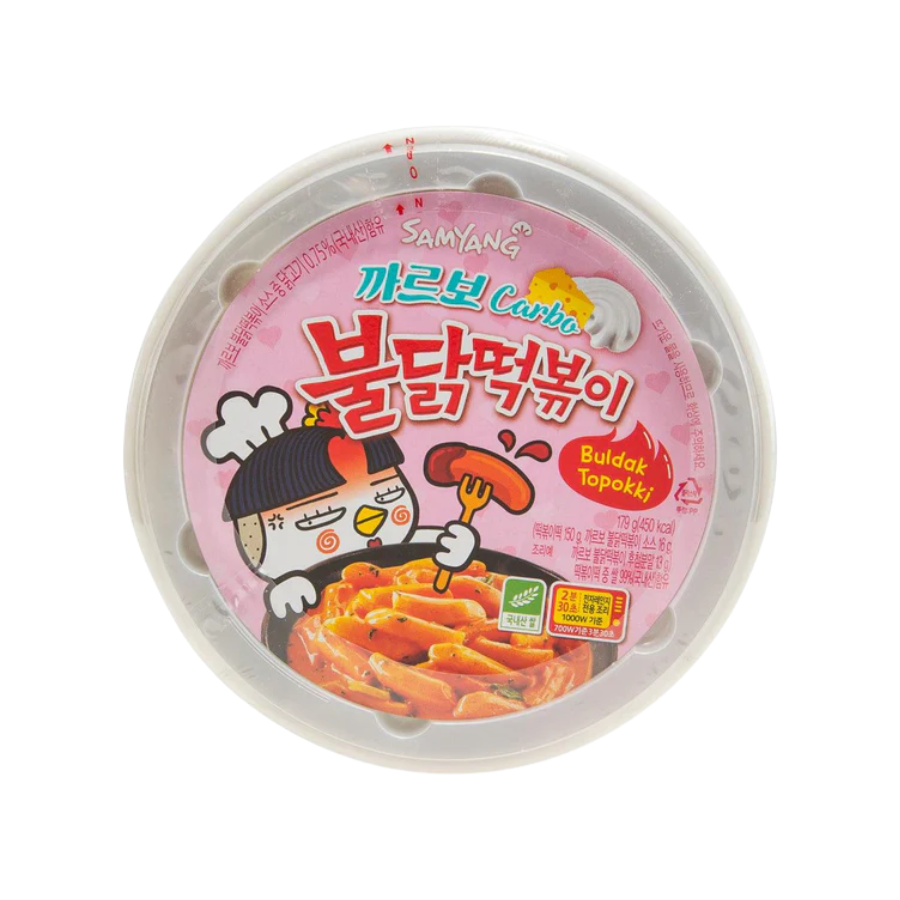 Samyang Tobokki Rice Cake With Carborana Sauce 179g is especially delicious with rich cheese that blends harmoniously with seasoning packages to bring an extremely enjoyable taste experience. Genuine Korean instant rice cakes , reputable and quality Samyang brand of rice cakes.