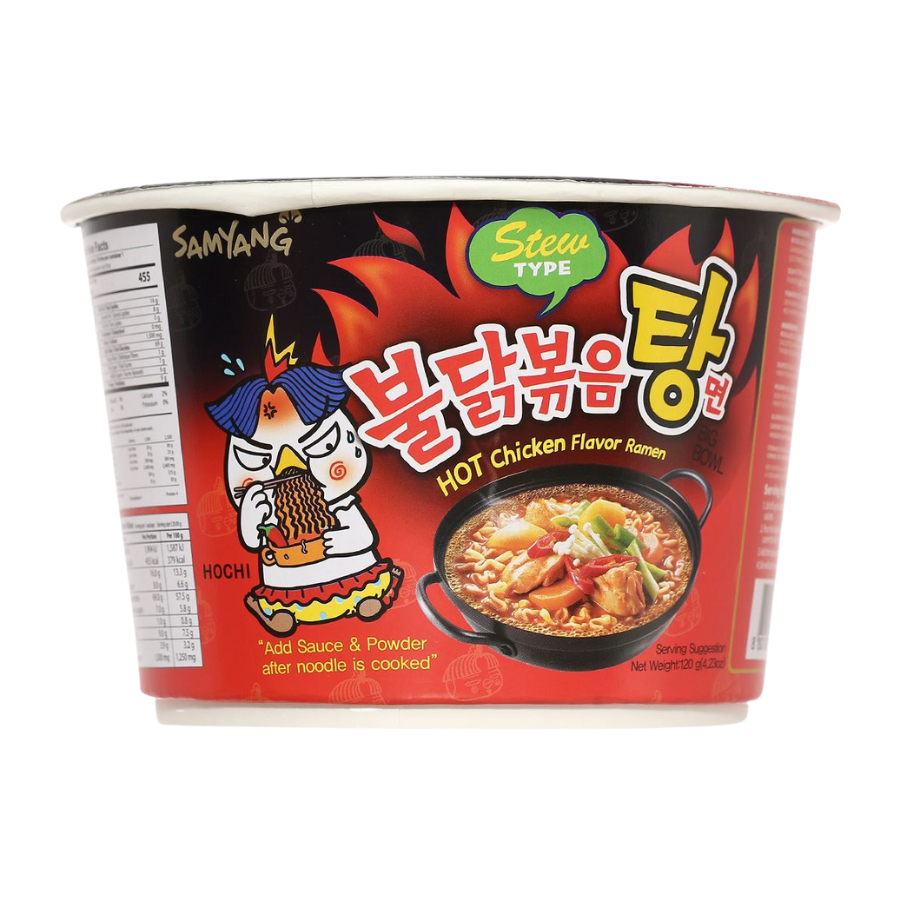 Samyang Water Chicken Noodles 120g is extremely attractive not to be missed with the extremely spicy taste with the rich and attractive Samyang spicy chicken soup permeates each delicious golden chewy noodle with a seductive aroma that stimulates the sense of smell and taste.