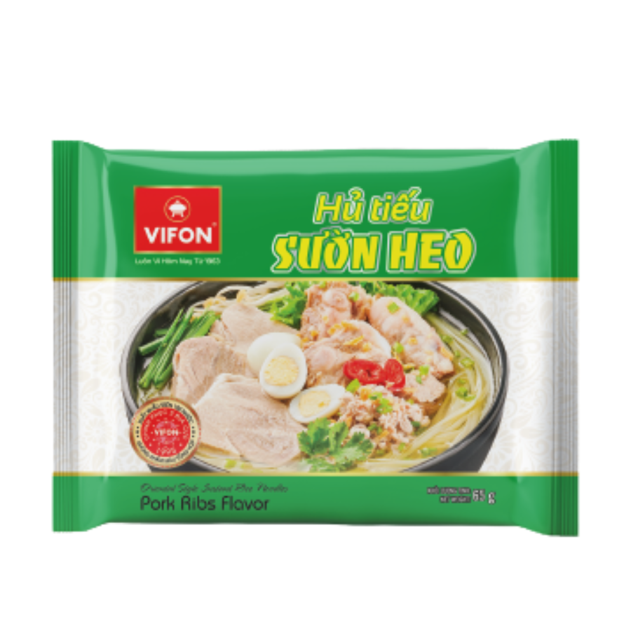 Very convenient and delicious. Vifon Rice Noodle Pork Flavor 65g is Vifon 's instant noodle product with the characteristic flavor of juicy pork ribs that permeates each strand of delicious chewy noodles with an irresistible attractive scent.