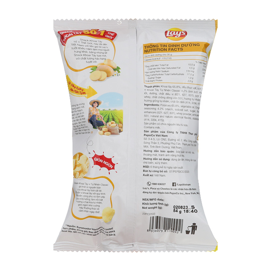 Lay's Classic Potato Snack is always fragrant, the potatoes are thin and crispy. Real potato taste.Lay's Classic Potato Snack 53g is very crispy, the natural potato flavor is quite fragrant and rich on each piece of potato. Lay's potatoes are well received and used by many young people for many activities