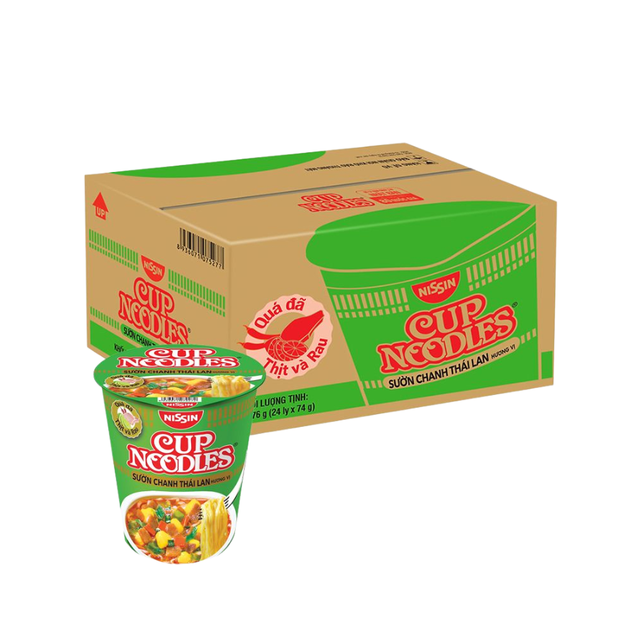 Nissin Thai Pork and Lemon the delicious yellow Nissin noodles blend in a fragrant soup with the taste of Thai lemon ribs, rich in flavor and ecstatic. Nissin noodles with Thai lemon rib flavor 74g extremely attractive bring you not only a bowl of instant noodles but also a quality and convenient meal.