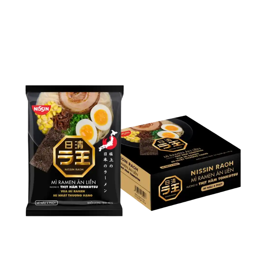 Nissin Noodles Raoh Tonkotsu Stewed Meat Ramen low fatty with a unique and advanced 2-layer structure. Using modern "Natural Crispy Drying" technology, it helps to retain the fresh and crispy taste of fresh noodles without being overwhelmed by the smell of fried oil. Absolutely no frying, helping to reduce the amount of grease and fat in each noodle. Ramen noodles are the optimal choice for customers who care about their health and want to reduce the amount of fat in their diets.