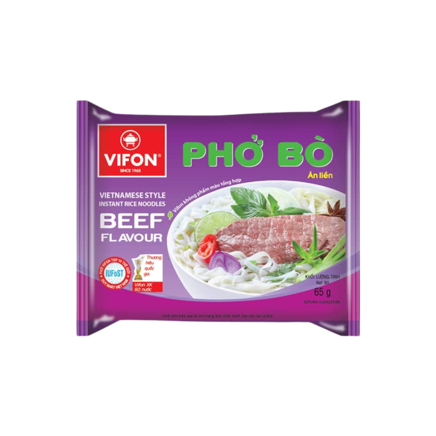 Instant noodle products are produced according to modern technology under the strict supervision and inspection of Vifon 's leading food experts , the product does not contain preservatives and is safe for consumers' health. 30 packages of Vifon beef noodle soup 65g , the perfect choice for a convenient and nutritious meal