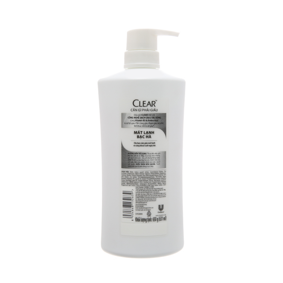 Clear shampoo Dutch brand, is the number 1 dandruff cleaning shampoo in Vietnam. Clear Cool Menthol 630g with anti-dandruff technology 3 effects: eliminate dandruff, attack dandruff, prevent dandruff from recurring and Vitamin B3 nourishes oily skin healthier.