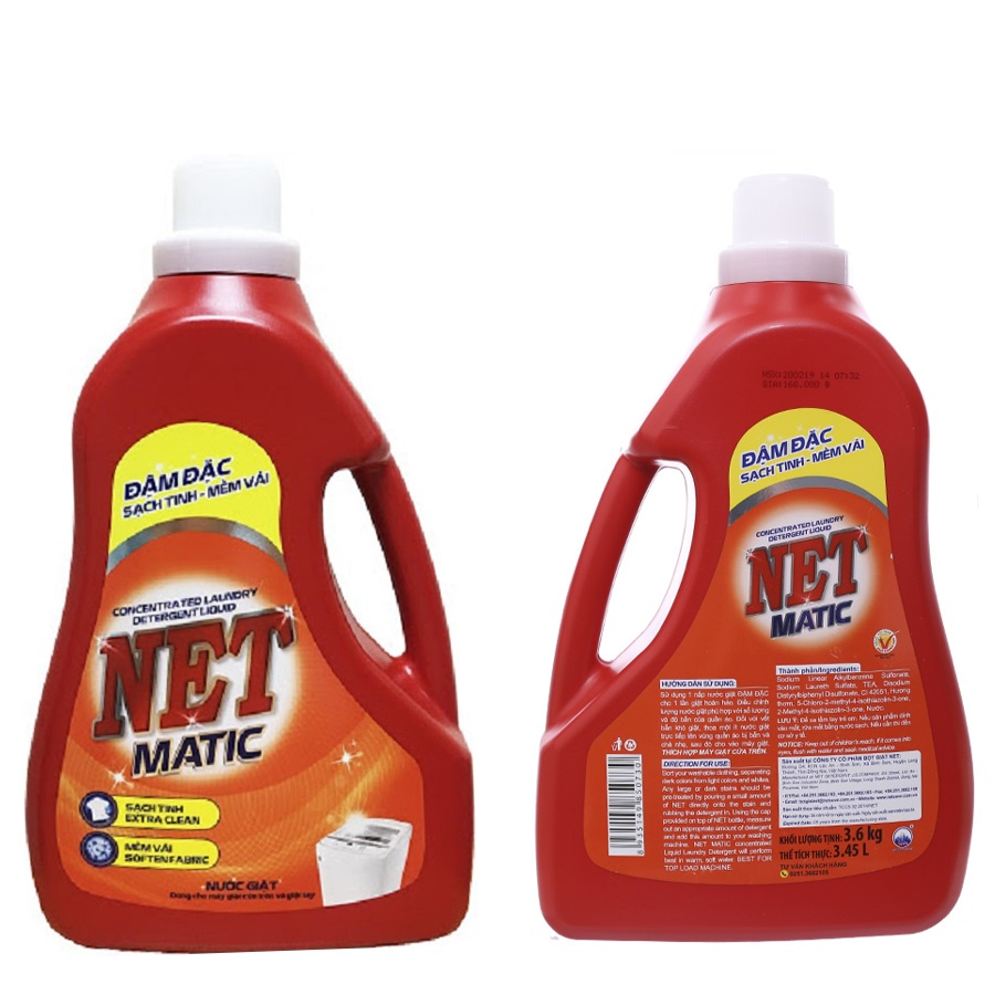 NET Matic Magical Detergent Liquid 3.3kg use hand wash, front load machine wash & top load NET Matic Laundry Detergent with concentrated detergent content helps: Remove dirt Clean quickly Soft fabric surface Palm oil extract Vitamin E Carotene